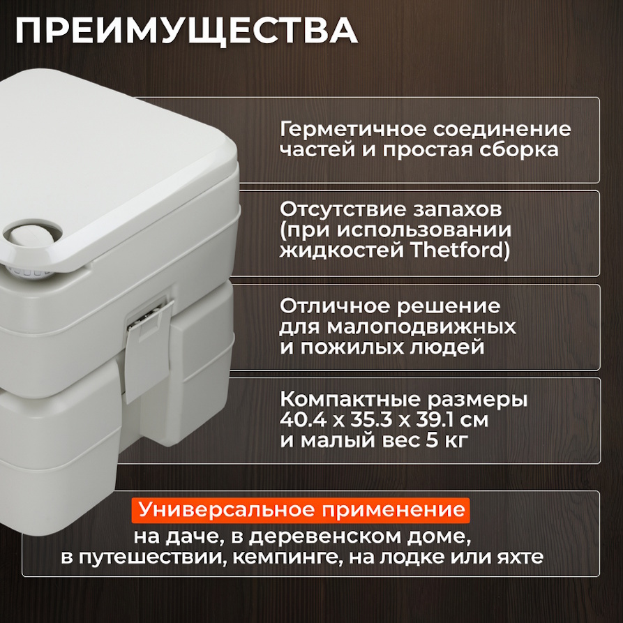 Туалет предназначен для использования по назначению в автодомах, котеджах, во время кемпинга и путешествий.