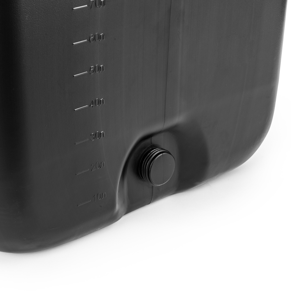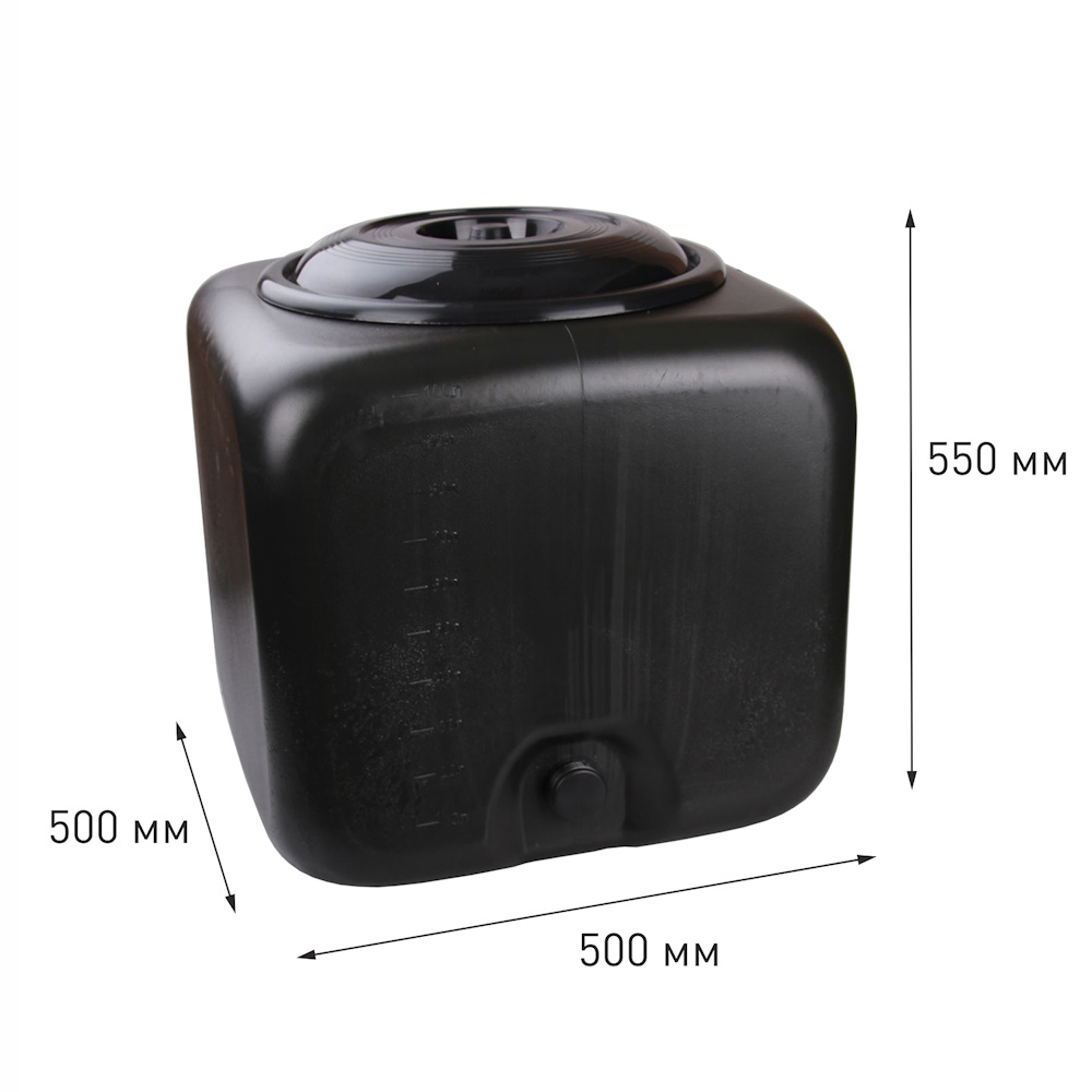 Бак выполнен из качественных полимеров, устойчив к солнечным лучам, влаге и перепадам температур. Благодаря большой горловине в него удобно наливать воду, также сбоку расположено место для слива на которое можно самостоятельно установить кран. На стенке изделия есть специальная шкала для определения уровня воды.