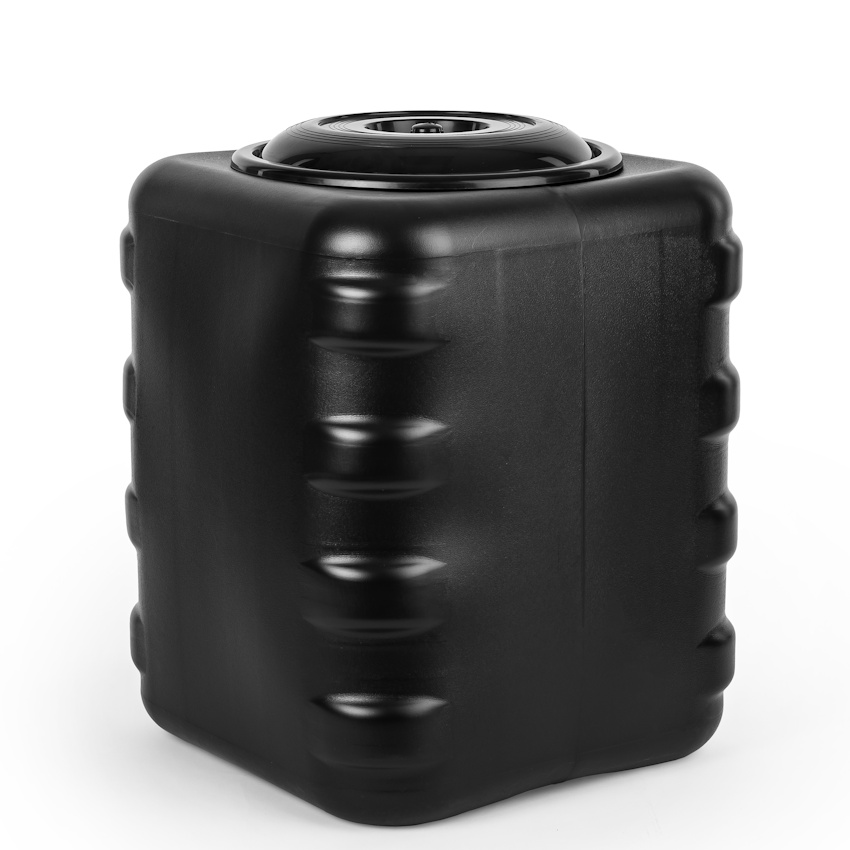 Бак выполнен из качественных полимеров, устойчив к солнечным лучам, влаге и перепадам температур. Благодаря большой горловине в него удобно наливать воду, также сбоку расположено место для слива на которое можно самостоятельно установить кран. На стенке изделия есть специальная шкала для определения уровня воды.