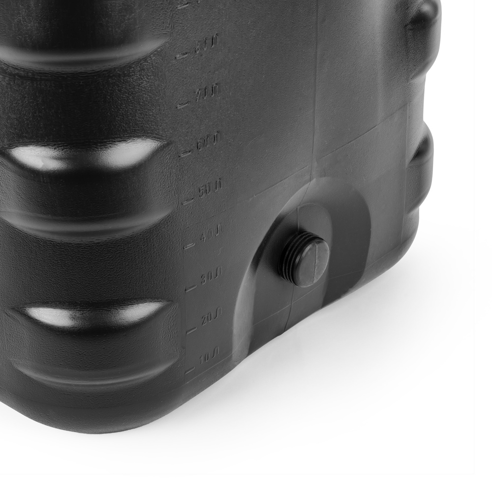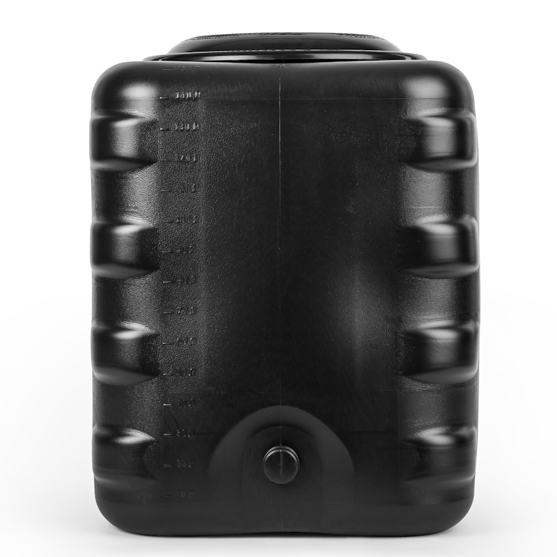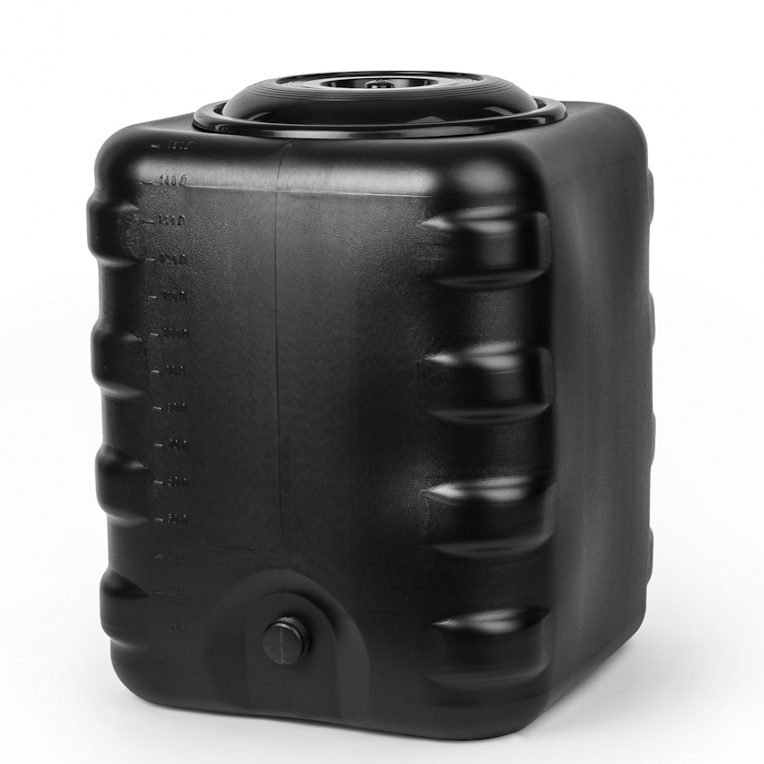 Бак выполнен из качественных полимеров, устойчив к солнечным лучам, влаге и перепадам температур. Благодаря большой горловине в него удобно наливать воду, также сбоку расположено место для слива на которое можно самостоятельно установить кран. На стенке изделия есть специальная шкала для определения уровня воды.