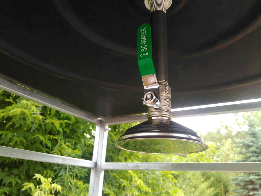 В каркасе Душа используются цельносварные трубы сечением 20х20. Трубы оцинкованы, у места расположения бака идёт дополнительная дуга для укрепления конструкции.