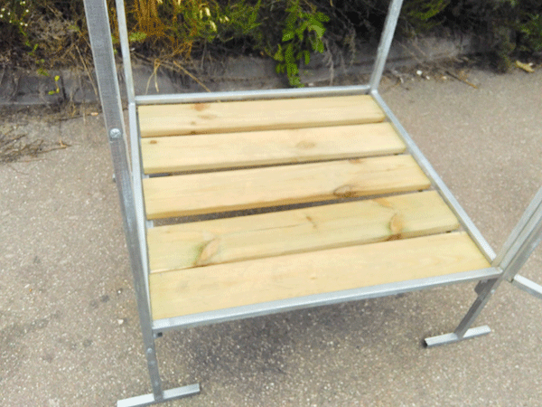 В каркасе Душа используются цельносварные трубы сечением 20х20. Трубы оцинкованы, у места расположения бака идёт дополнительная дуга для укрепления конструкции.