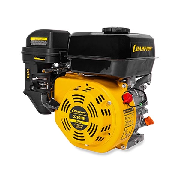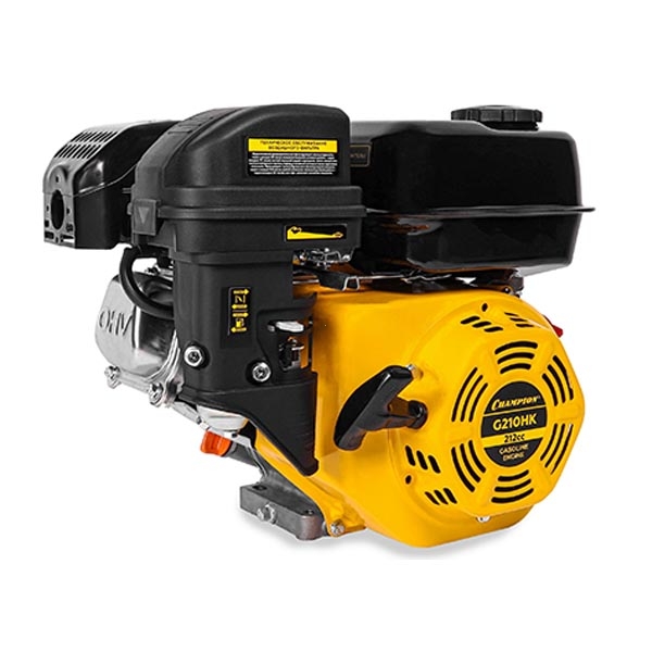 Двигатель Champion G210HK — четырехтактная модель с верхним расположением клапанов для применения на мотоблоках, культиваторах, снегоуборочных машинах, виброплитах и на другой садовой или строительной технике.