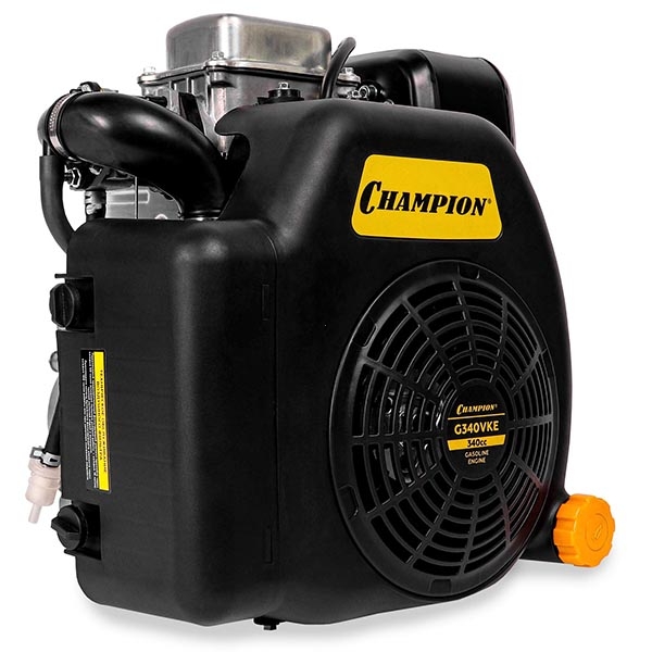 Двигатель Champion G340VKE наделен рядом выдающихся качеств. Воздушное охлаждение этой модели с помощью вентилятора позволит долго сохранит агрегат от выхода из строя в результате перегрузки. Вертикальный вал также является полезной особенностью строения. Двигатель наделяет технику мощностью 11 л.с., что является высоким показателем для садового класса. В сочетании с объемом в 340 куб.см. такой мощностью можно достичь высочайшей производительности и эффективности. Использование этого механизма дает экономию времени без потери качества работы.