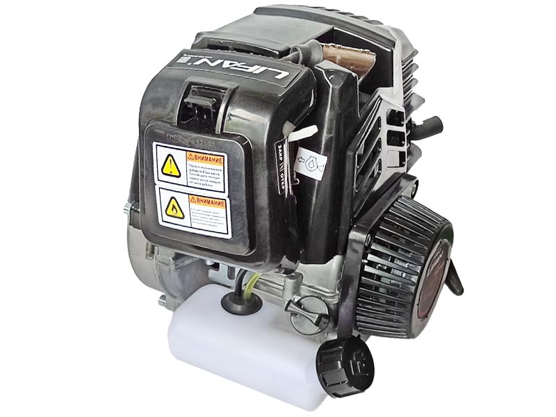 Компактный 4-хтактный двигатель Lifan 139F-2 мощностью 1.3 л.с. отличается повышенным числом оборотов в минуту до 6500 и отсутствием выходного вала. Двигатель предназначен для установки на приводные валы триммеров, мотобуров и другой малой техники бытового применения. Приводной вал фиксируется зажимными «губками» двигателя Lifan 139F-2. Особенность конструкции карбюратора позволяет вращать двигатель во всех плоскостях не боясь протечки масла и топлива и без потери мощности.
