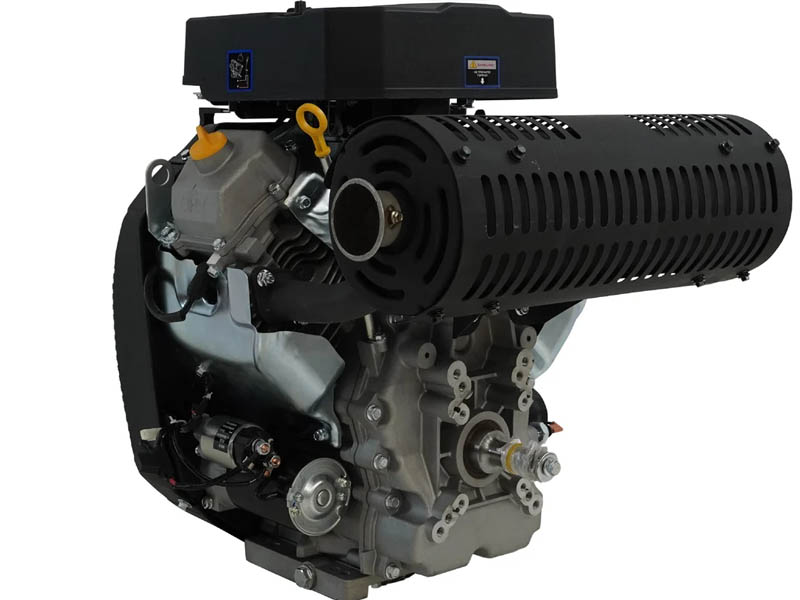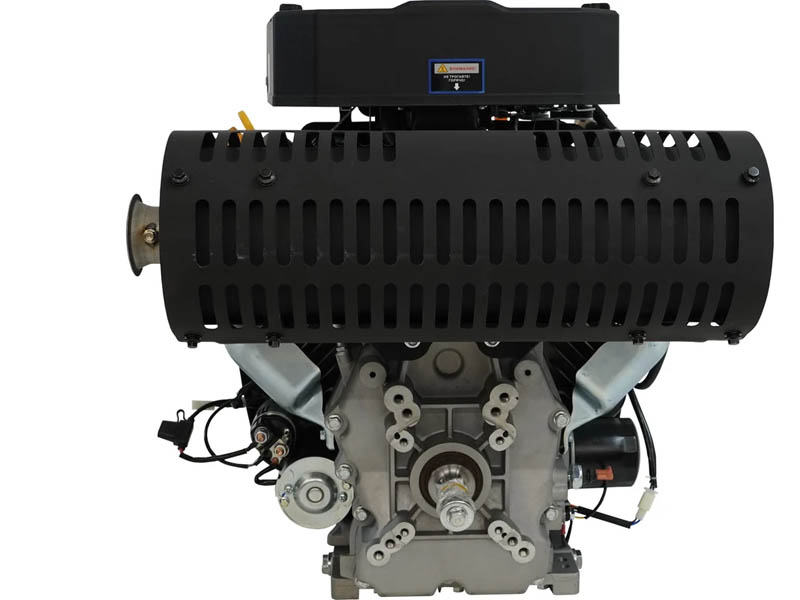 Бензиновый двигатель 2V90F — 4-х тактный, 2-х цилиндровый двигатель с электрическим стартером. Мотор оснащен катушкой освещения 20 Ампер, диаметр вала 25 мм. Газ механический.