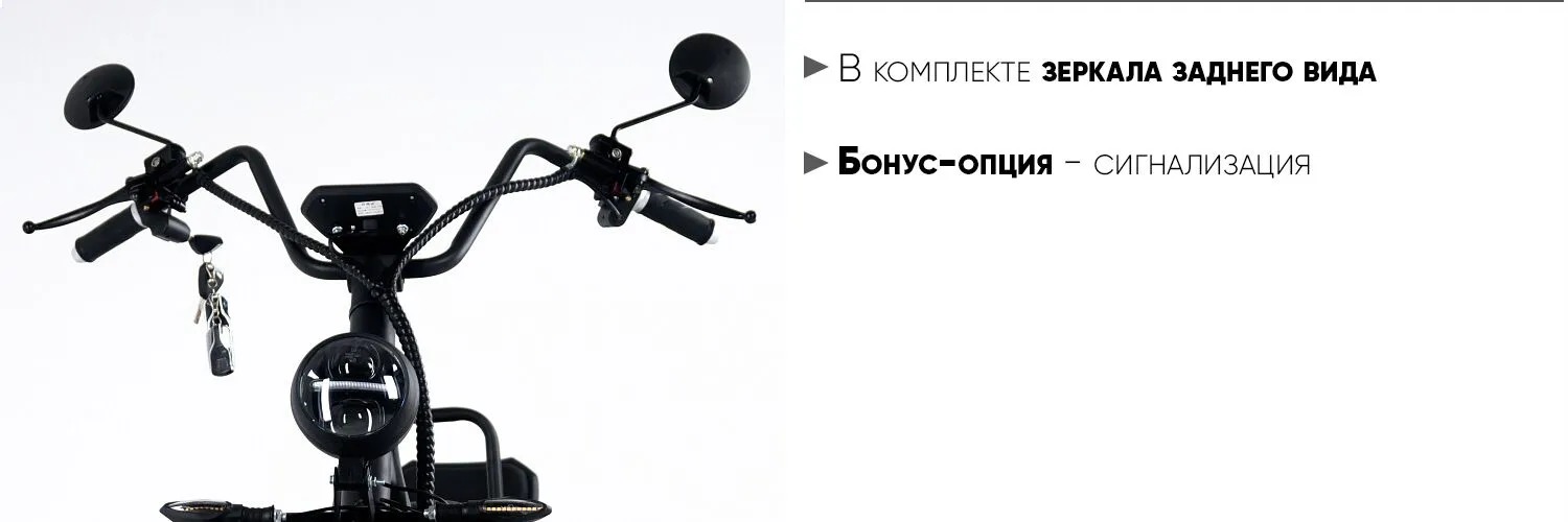 На руле есть бортовой компьютер с современным информативным ЖК-Дисплеем, который позволяет отслеживать скорость передвижения, уровень заряда аккумулятора и общий пробег.