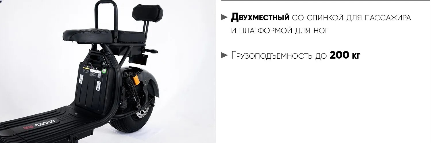 Этот транспорт способен перевозить 2 человек общим весом до 200 кг на весьма внушительные расстояния — до 40 км на одной зарядке аккумулятора.