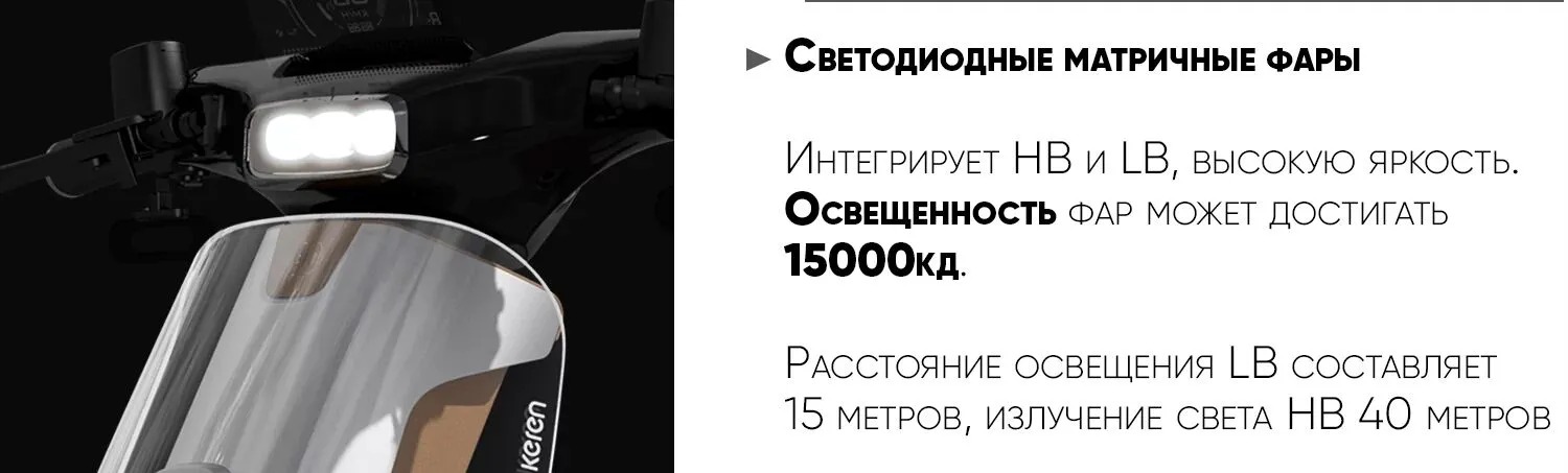 Электроскутер Keren выполнен в футуристическом дизайне и имеет ряд интересных решений. Модель представляет собой прекрасное сочетание стиля, эффективности и комфорта.