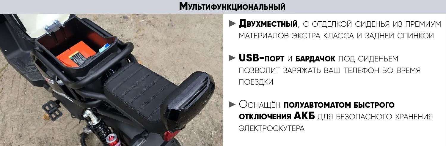 - Запас хода до 55 км на одном заряде позволит совершать поездки на дальние расстояния без частых остановок для зарядки