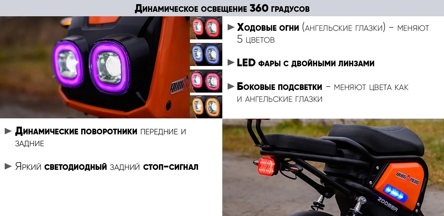 - Мотор мощностью 1500Вт за считанные секунды разгонит электроскутер Zoomer до скорости 55 км/ч