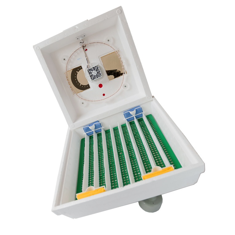Поворот яиц осуществляется путем изменения наклона инкубатора. Воздухообмен – принудительная конвекция воздуха с помощью вентилятора