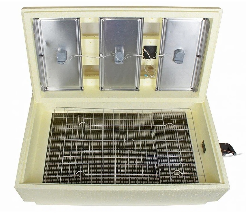 Золушка» — это автоматический инкубатор. Он сам переворачивает яйца на 180 градусов 10 раз в сутки. Так же поворот можно сделать вручную. Это очень удобно. Сам корпус инкубатора сделан из плотного пенопласта. Нагревательный элемент установлен на крышке инкубатора и занимает всю её площадь. Это обеспечивает равномерный прогрев яиц. Помимо этого, инкубатор позволяет поддерживать температуру в камере посредством горячей воды. Конструкция нагревательных элементов запатентована российскими инженерами.