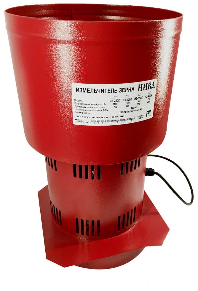 Бытовая зернодробилка собственного производства НИВА ИЗ-400К предназначена для использования в личном подсобном и фермерском хозяйстве и применяется для измельчения сухого фуражного зерна и других видов зерновых культур при приготовлении кормовых смесей для домашних животных и птиц.