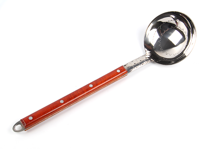 Рабочая часть половника изготовлена из высококачественной нержавеющей стали. Этот материал не боится термической обработки, не выделяет токсичных веществ. С помощью этого кухонного аксессуара вы сможете перемешивать, наливать, вынимать из жидкости нужные вам продукты и сервировать блюда. Благодаря небольшому ушку на конце ручки половник можно подвесить в удобном для вас месте на кухне.