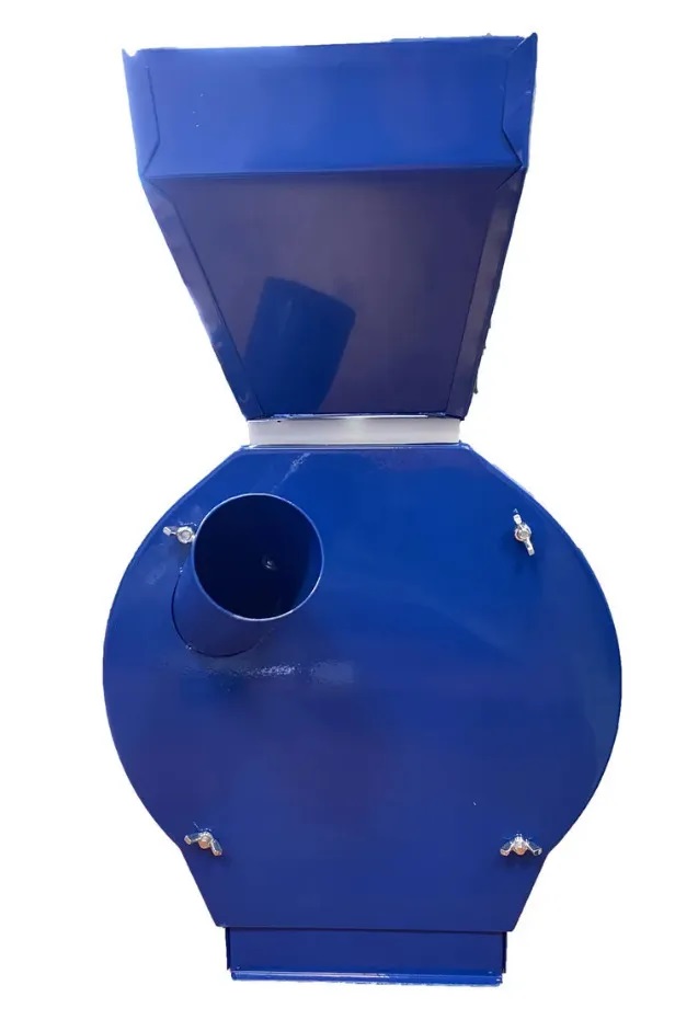 Измельченная масса ссыпается в надеваемый на нижнее выходное отверстие мешок или другую емкость.