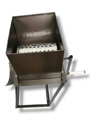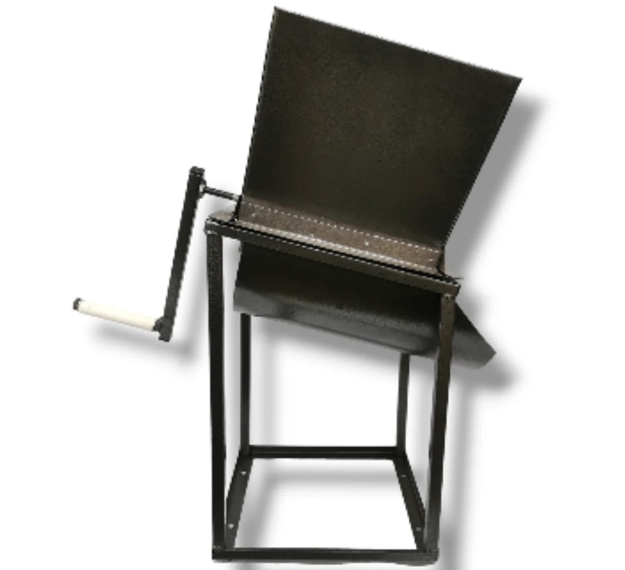 - Загрузите в корпус кормоизмельчителя продукты для измельчения и с помощью рукоятки вращайте барабан и получайте готовый продукт.