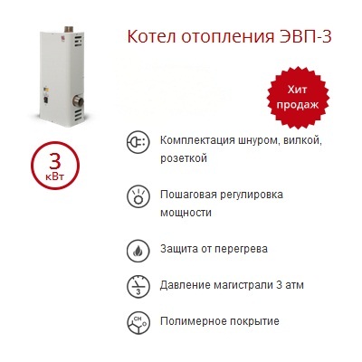 Котел электрический (электроводонагреватель) ЭВП-3 кВт