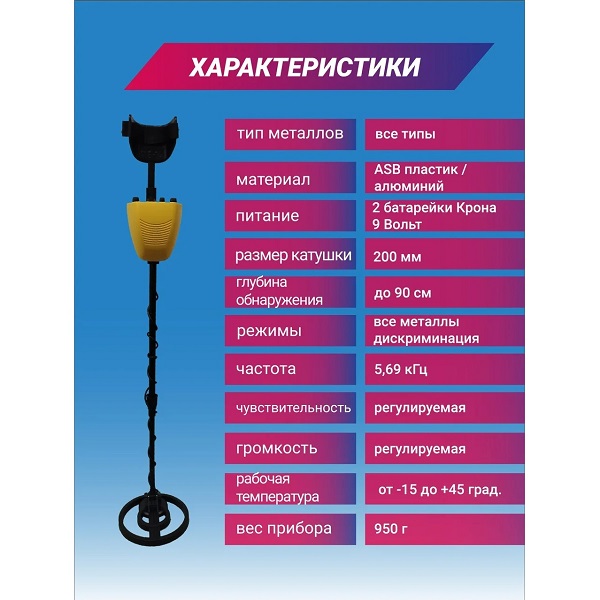 | Максимальная глубина обнаружения, см | 80 (зависит от размеров металла) |
