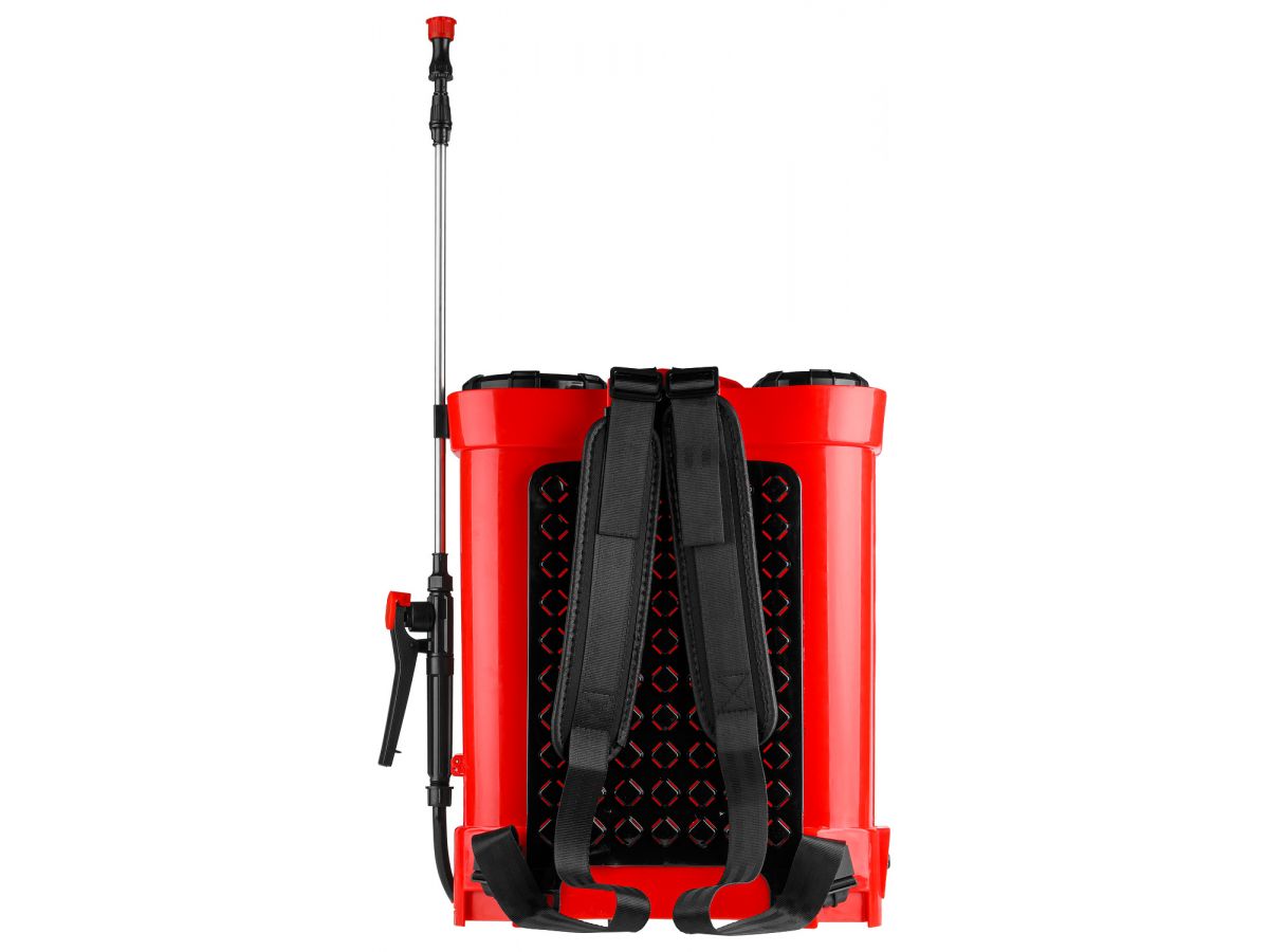 Аккумуляторный садовый опрыскиватель оборудован 16-литровым баком для жидкости, функционирует от литий-ионной батареи. Устройство применяется для работ в саду: обработки удобрениями или бережного орошения растений. Имеется регулировка подачи жидкости. Давление создается одним нажатием кнопки. Благодаря широкой горловине основной бак легко заполнить жидкостью.