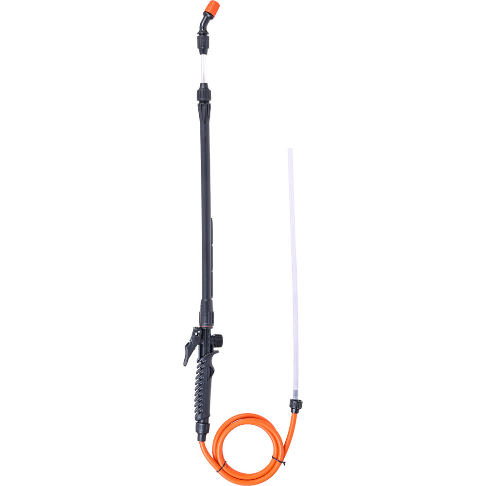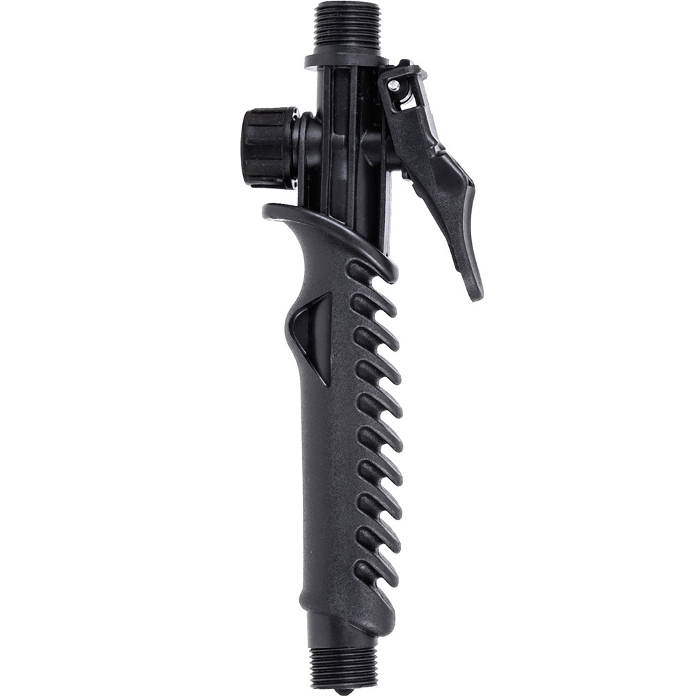 - Регулировка распыла от струи до тумана даёт возможность использовать опрыскиватель, как для защиты растений от вредителей, так и для полива;