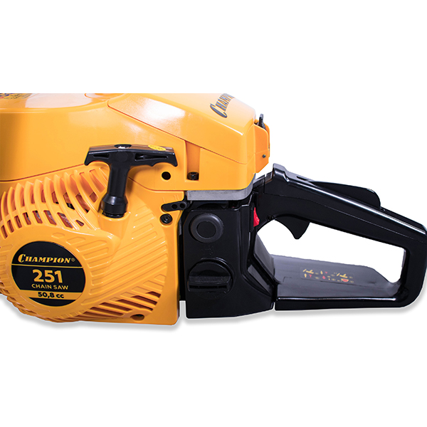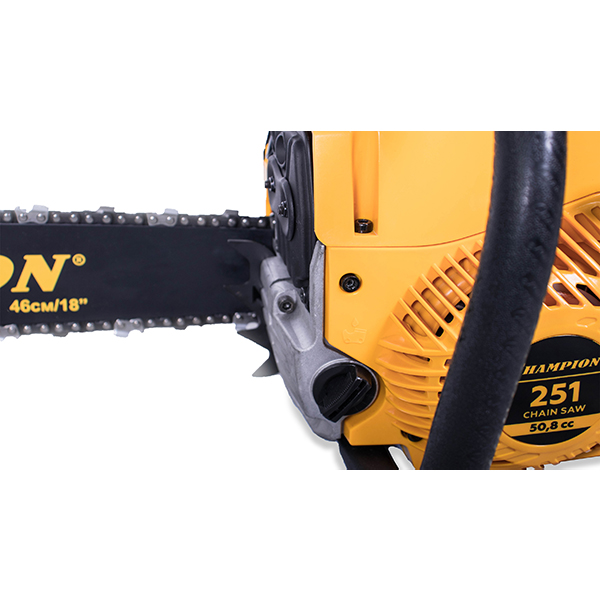 Бензопила Champion 251-18" — это легкая бытовая пилу для работ в саду, небольшого строительства или ремонта. Заготовка дров, удаление сухих веток и сучков, распиловка строительных материалов и валка садовых деревьев — простая задача для бензопилы.
