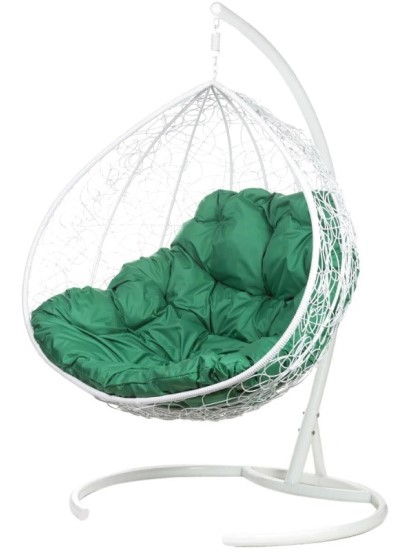 Кресло подвесное BiGarden Gemini White (двойной, зеленая подушка)