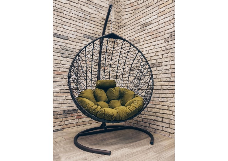 Подвесное кресло Кокон Капля Стандарт (чёрный/зеленый).