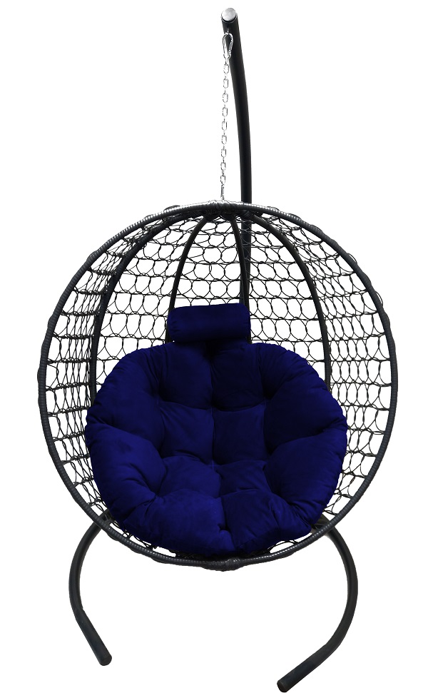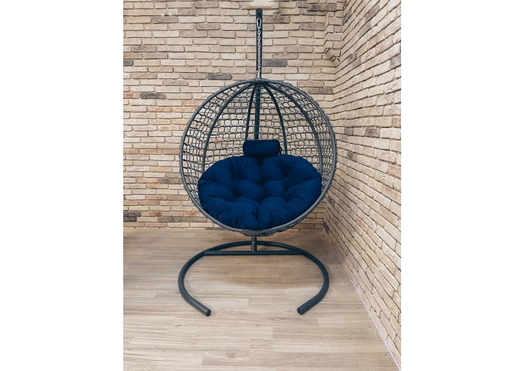Подвесное кресло Кокон Круглое Премиум (чёрный/синий)