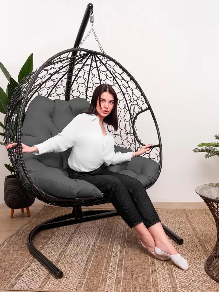 Подвесное кресло с плетением из искусственного ротанга можно использовать не только для дома или садового участка, как место для отдыха на свежем воздухе, он прекрасно впишется в современные интерьеры квартиры и офисов. А главное, это не просто стильный предмет мебели, его основная задача ⎯ это подарить вам комфортный и уютный уголок, который придется по душе каждому.