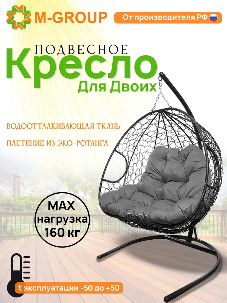 Кресло подвесное M-Group Для двоих (черный ротанг/серая подушка)