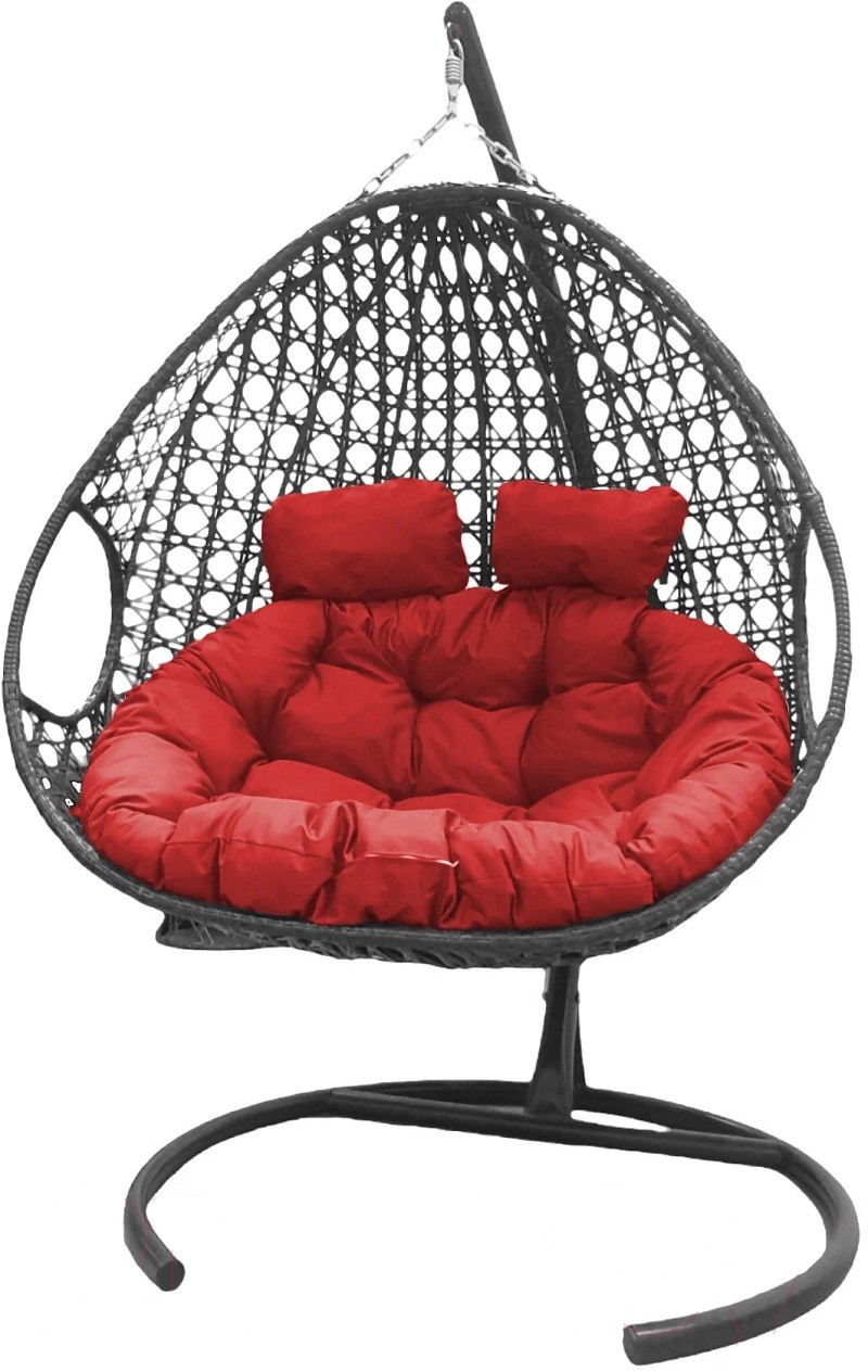 Кресло подвесное M-Group Для двоих Люкс (серый ротанг/ красная подушка)