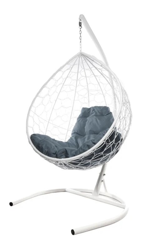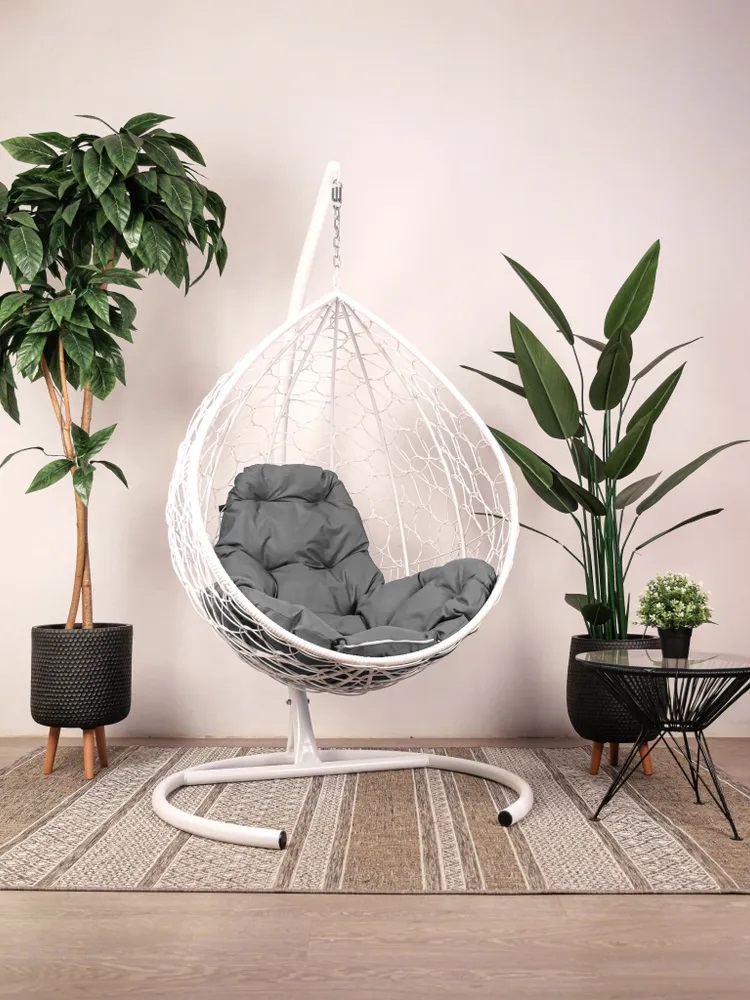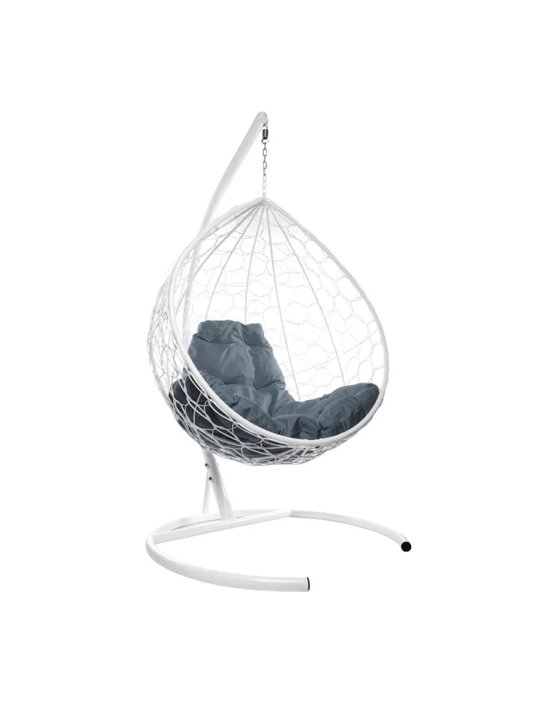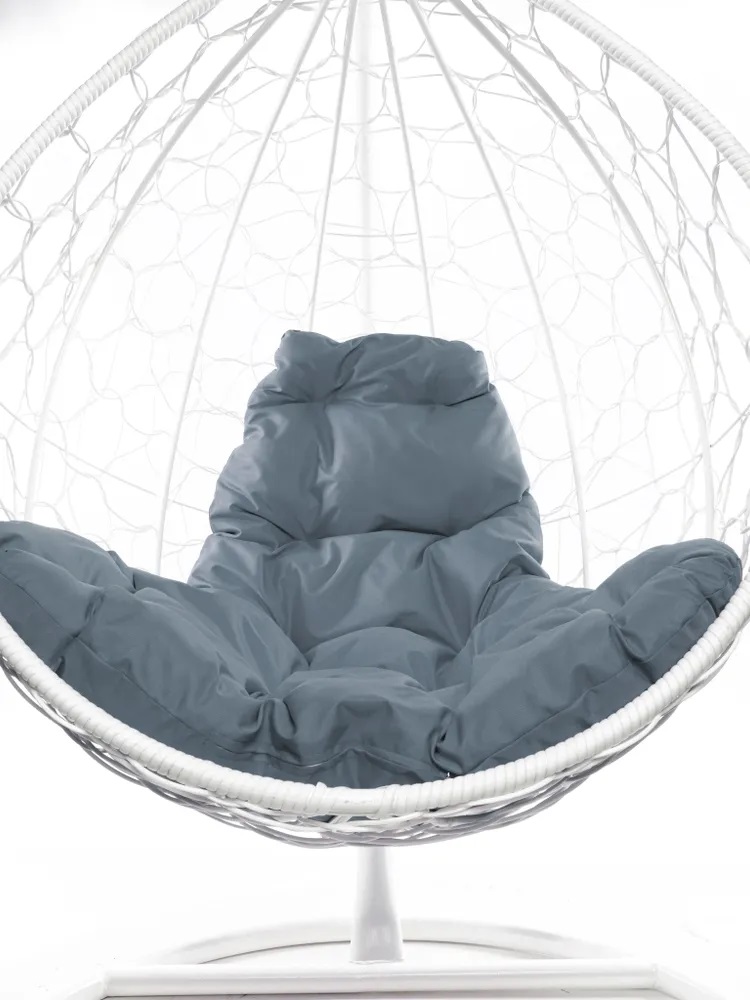 Кресло подвесное M-Group Капля (белый ротанг/серая подушка)