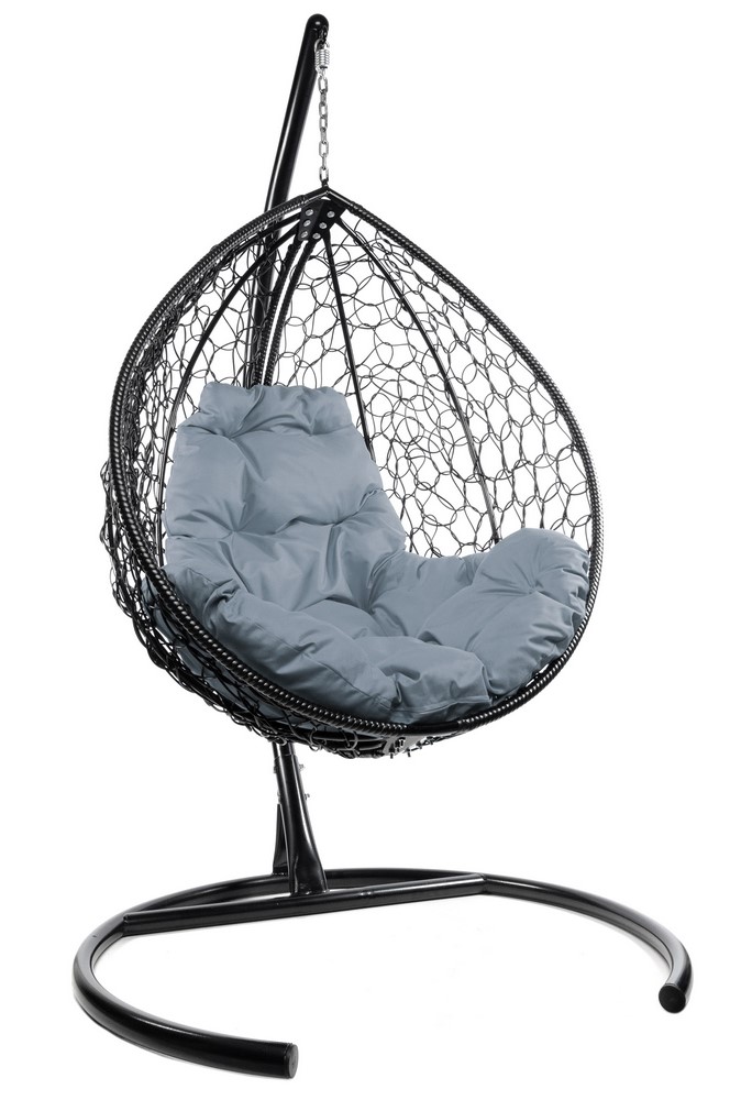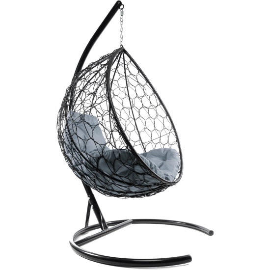 Кресло подвесное M-Group Капля (черный ротанг/ серая подушка)