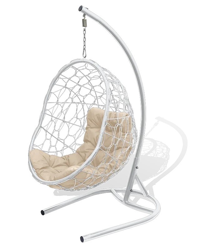 Кресло-кокон Риторика Овалис (белое с бежевой подушкой)