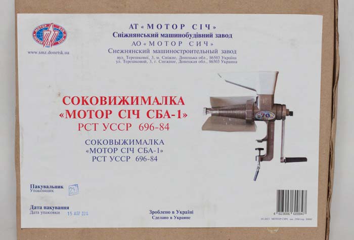 Соковыжималка ручная Мотор Сич СБА 1 (алюминиевая)