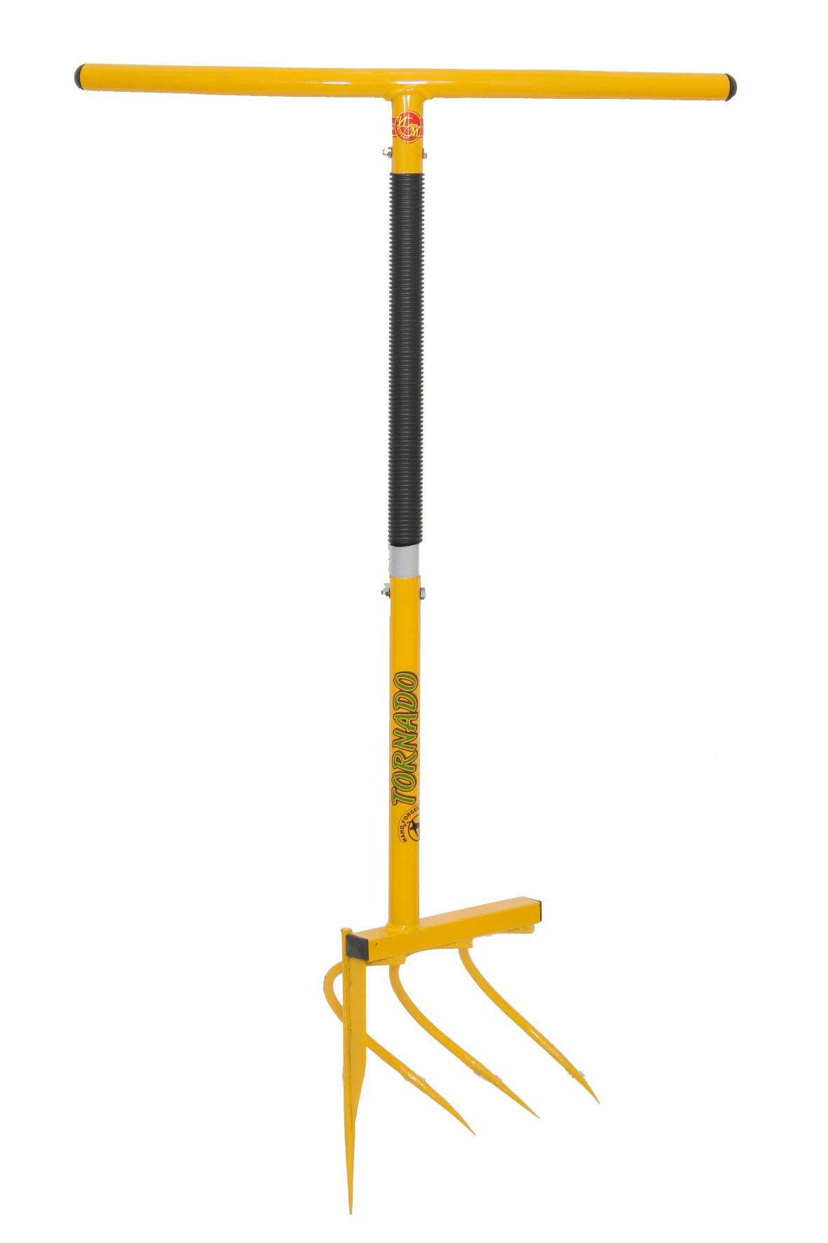 Ширина захвата рабочего органа, составляет 25см. Рычаг культиватора-картофелекопателя состоит из стальной облегченной трубы, с возможностью регулировки под рост человека в 3 положениях (от 1,50м до 1,85м), и изогнутой рукоятки. Рукоятка выполнена пропорциональным геометрическим изгибом, относительно расположения рабочего органа. Это позволяет одним движением рукоятки «от бедра к бедру», внедрить рабочий орган картофелекопателя на глубину 20см, который «ныряет» под картофельный клубень и извлекает его из почвы.