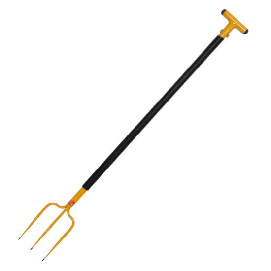 Вилы садовые 3 имеют три кованых зуба, изготовленных из высокопрочной стали марки ст.45. Длина зубьев составляет 20 см, ширина захвата зубьев – 14 см, длина рукоятки, изготовленной из стальной облегченной трубы с пластиковым кожухом, составляет 97 см. Вверху рукоятки крепится Т-образная металлическая ручка для удобного захвата рукой. Вес изделия 1,5 кг.
