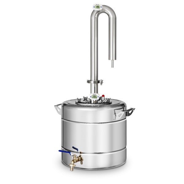 Дополнительная 30-сантиметровая царга способствует лучшей очистке и укреплению дистиллята. Предусмотрена возможность установки РПН и выбор способа нагрева: плита или встроенный ТЭН.