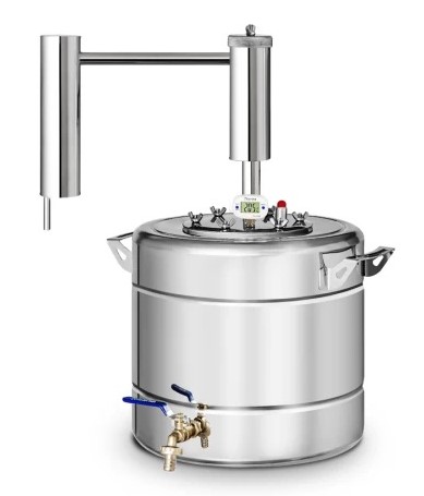 Дно перегонного куба – ферромагнитное. Подходит для газовых, индукционных и электрических плит. Модели от 20-ти литров могут быть оснащены встроенным ТЭНом.