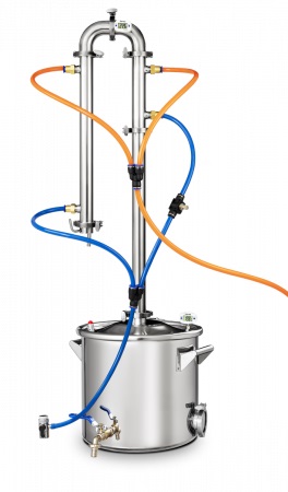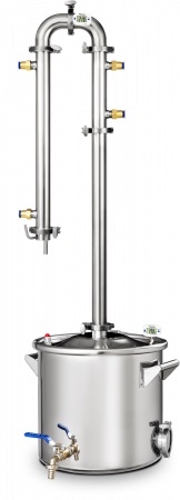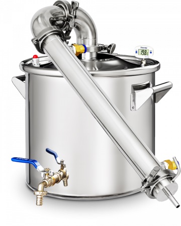 Бак аппарата, как и все его элементы, сделаны из жаропрочной стали марки AISI 304/430 устойчивой к ржавчине и механическим деформациям. Перегонный куб оснащен всем необходимым для комфортного и безопасного использования: