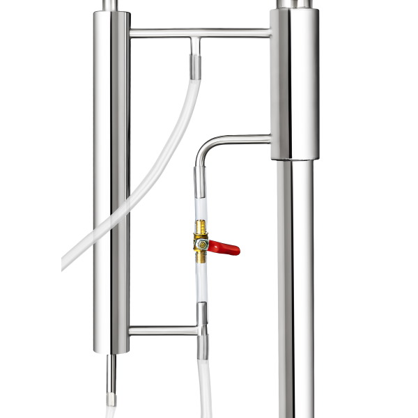 С помощью крана мы можем регулировать подачу воды в дефлегматор, тем самым меняя крепость дистиллята на выходе. Царгу можно дополнительно наполнить насадками Панченкова, чтобы повысить качество очистки.