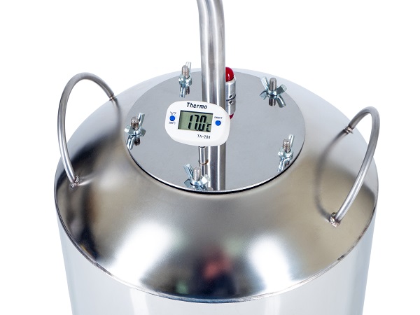 Самогонный аппарат выполнен из нержавеющей стали, разрешенной для пищевого производства — AISI 304. Металл химически инертен: не окисляется и не влияет на вкус будущего алкоголя.