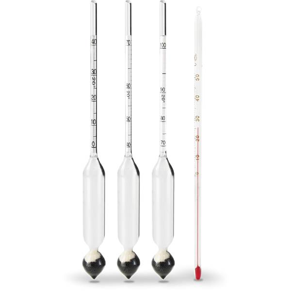 Спиртовой ареометр предназначен для изменения крепости дистиллята. Набор состоит из трех ареометров, охватывающих разный диапазон, для большей точности измерения. Также в наборе есть термометр для определения температуры жидкости.