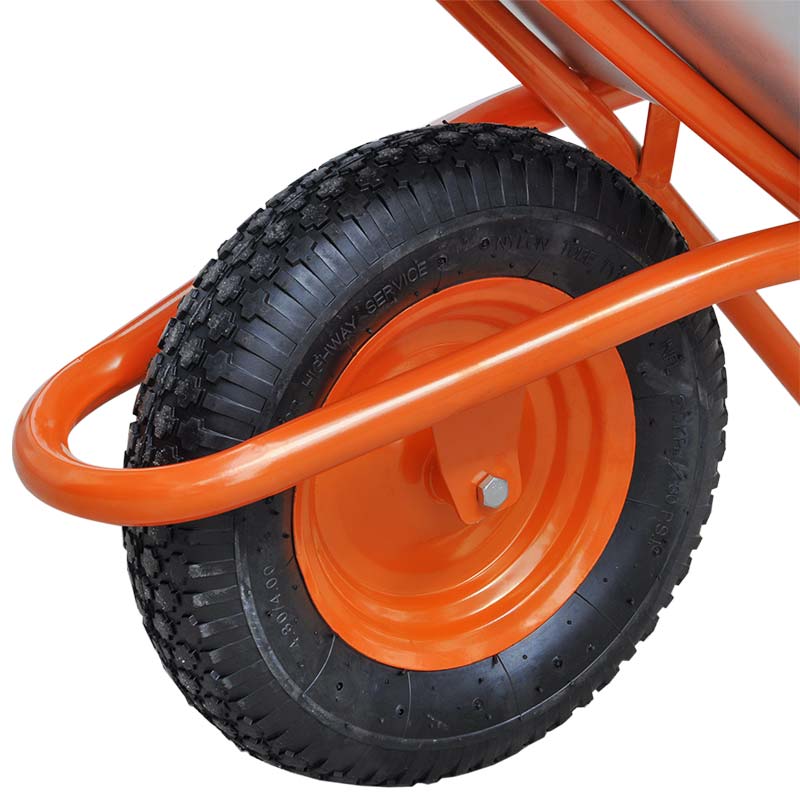 - Большое пневматическое колёсо диаметром 40 см. на стальном диске.
