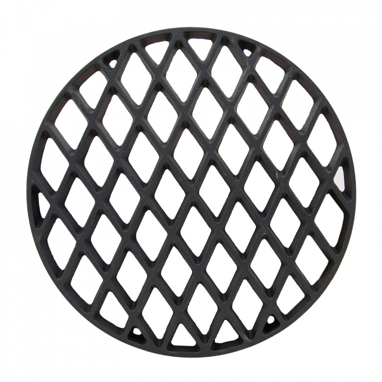 Решетка устанавливается на тандыре на приспособление для подвешивания шампуров (размер решетки определяется исходя из диаметра приспособления). Также решетку можно использовать в жаровне – гриль настольной, печи Майя, вместо решеток из нержавеющей стали.
