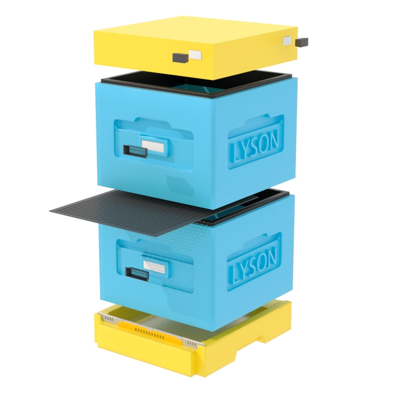 В комплект входит: 2 корпуса Дадан на 10 рамок, крышка улья, сетчатое дно в улей гигиеническое.