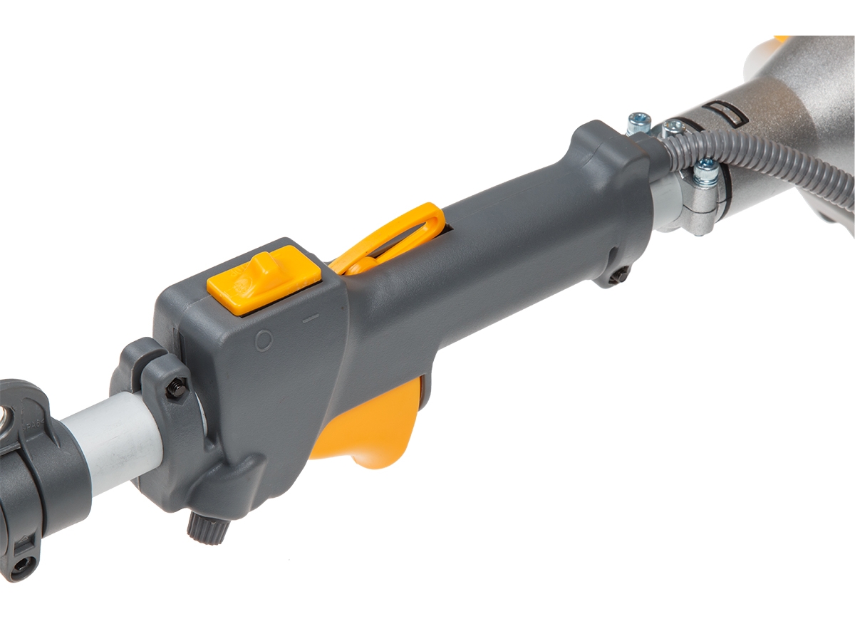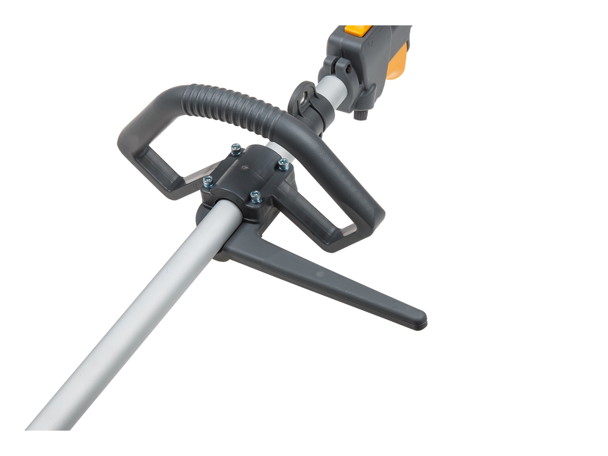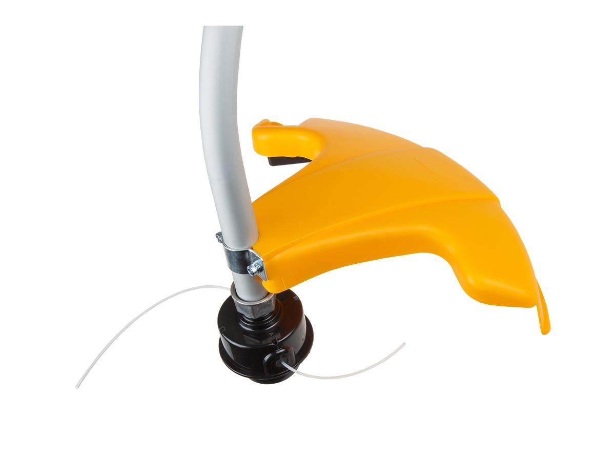 Легкая и эргономичная мотокоса с изогнутой штангой позволяет работать в самых труднодоступных местах. Р-образная рукоятка делает мотокосу компактной для маневрирования. Такой тип рукоятки не требуетразборки перед перевозкой или хранением. Комплектуется полуавтоматической косильной головкой с леской.