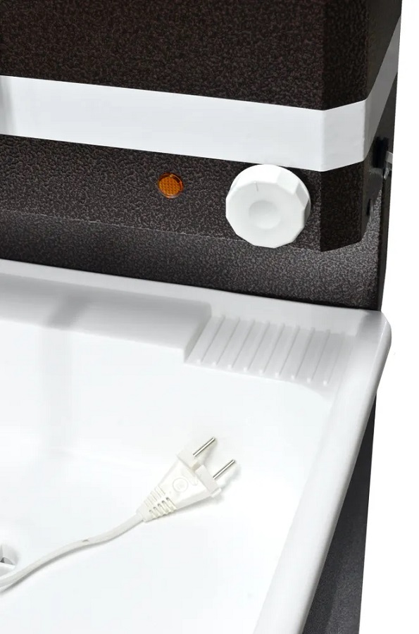 Тумба-умывальник , включает в себя, тумбочку которая аккуратно скрывает способ слива воды и позволяет осуществлять водоотвод в канализацию или отдельную емкость, бак с шаровым краном и теном с регулировкой температуры воды. Время нагрева бака до температуры 60 градусов составляет около 30 минут.