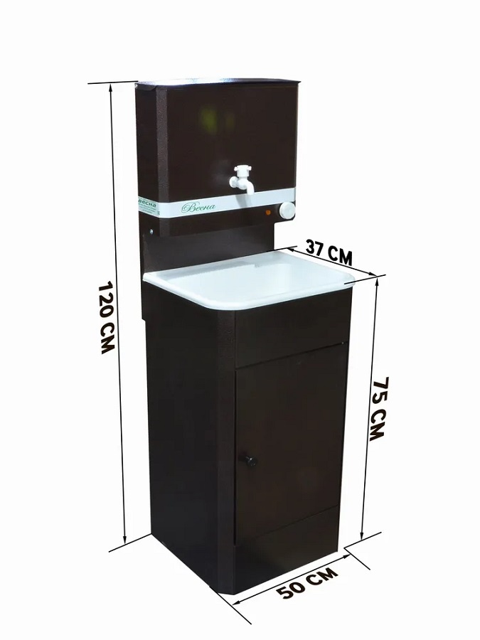 Дачный умывальник с подогревом Весна поможет вам облегчить дачную жизнь, где нет проведенного водоснабжения, благодаря нему умываться и мыть руки, посуду, теперь можно теплой водой и с полным комфортом. Также будет отличным решением для гаража, беседки, сада, подсобных помещений.